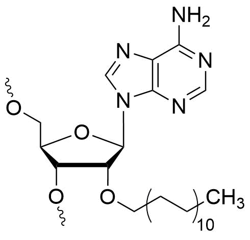 | 2’O-C16-A | 2′-O-Hexadecyl A | 553.64 | 15,400 | Yes | Yes | Yes |