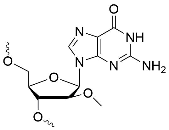 | 2'O-C3NH2-G | 2'-O-aminopropyl G | 402.30 | 11,500 | Yes | Yes | Yes |