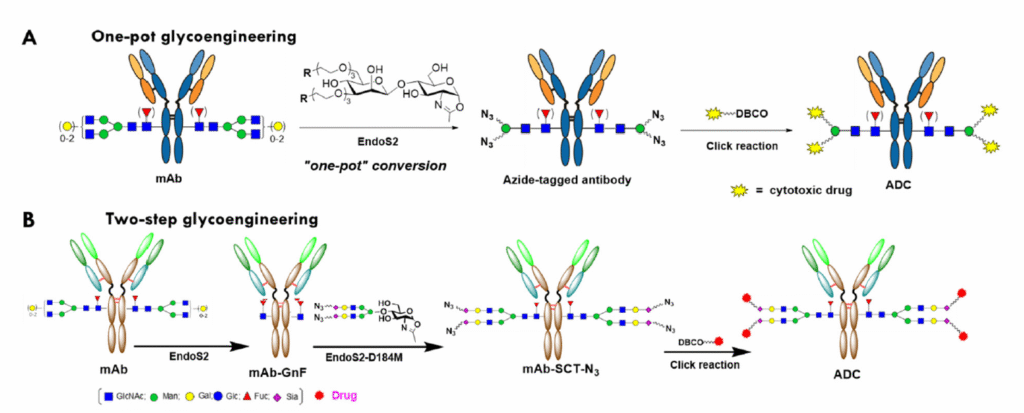 [7] Remon van Geel, et al., Chemoenzymatic Conjugation of Toxic Payloads to the Globally Conserved N-Glycan of Native mAbs Provides Homogeneous and Highly Efficacious Antibody–Drug Conjugates, Bioconjugate Chemistry 2015 26 (11), 2233-2242. DOI: https://doi.org/10.1021/acs.bioconjchem.5b00224